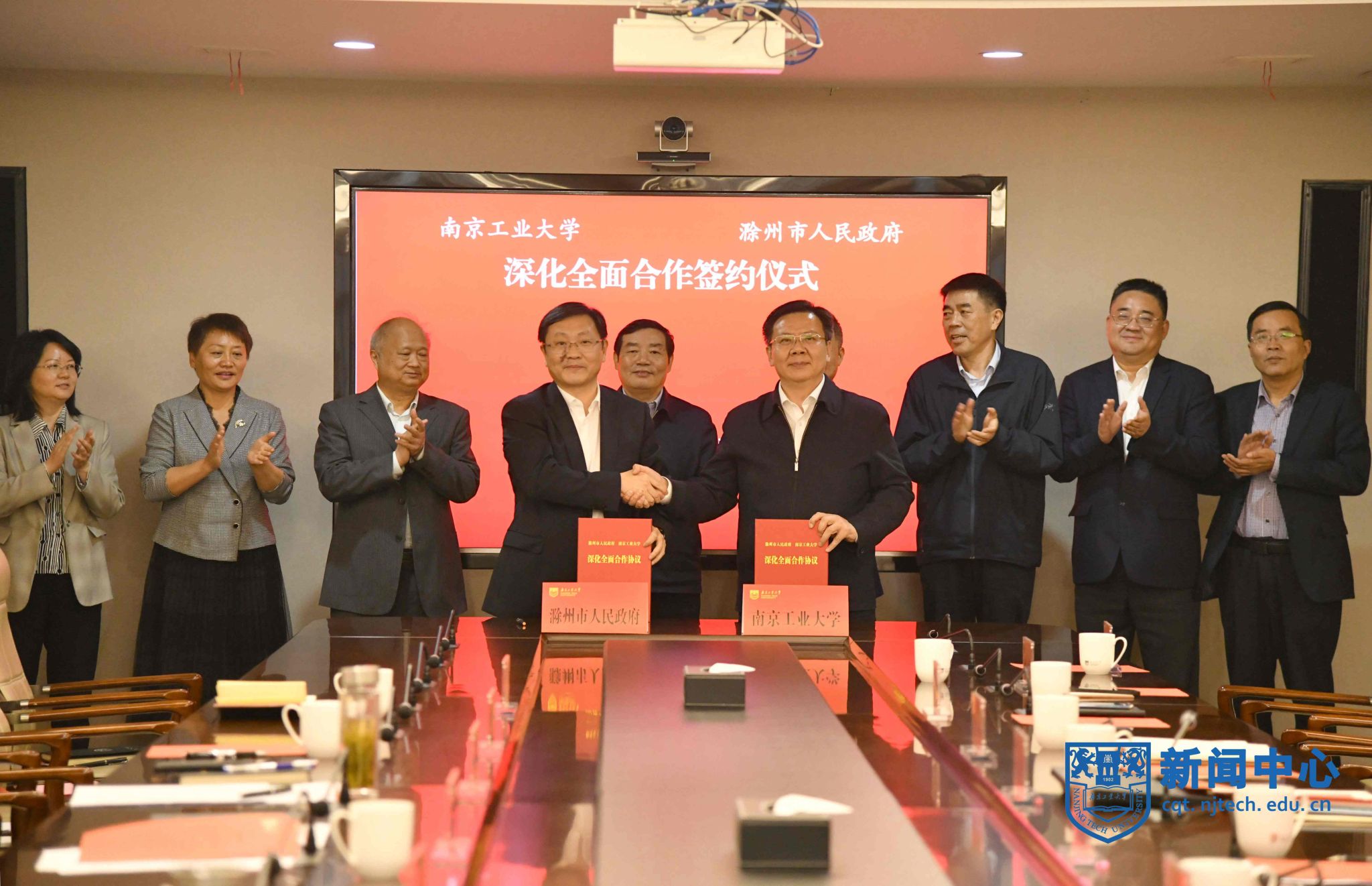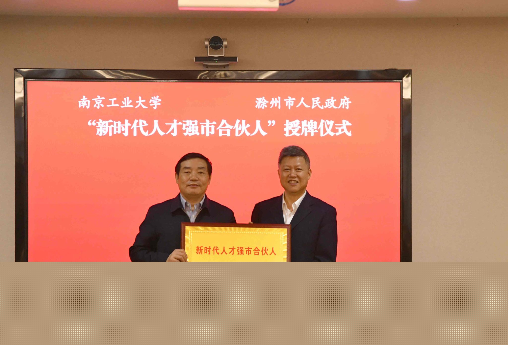 會上,吳勁市長、蔣軍成校長共同簽署《滁州市人民政府南京工業大學深化全面合作協議》,許繼偉書記、芮鴻巖書記共同頒授“新時代人才強市合伙人”銅牌。