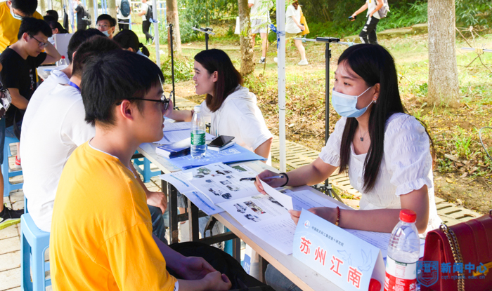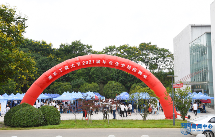 9月16日下午,南京工業大學首場2021屆畢業生專場招聘會在江浦校區體育館前廣場舉辦。