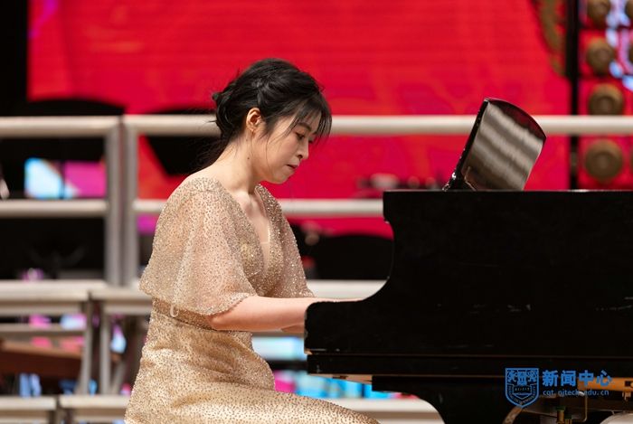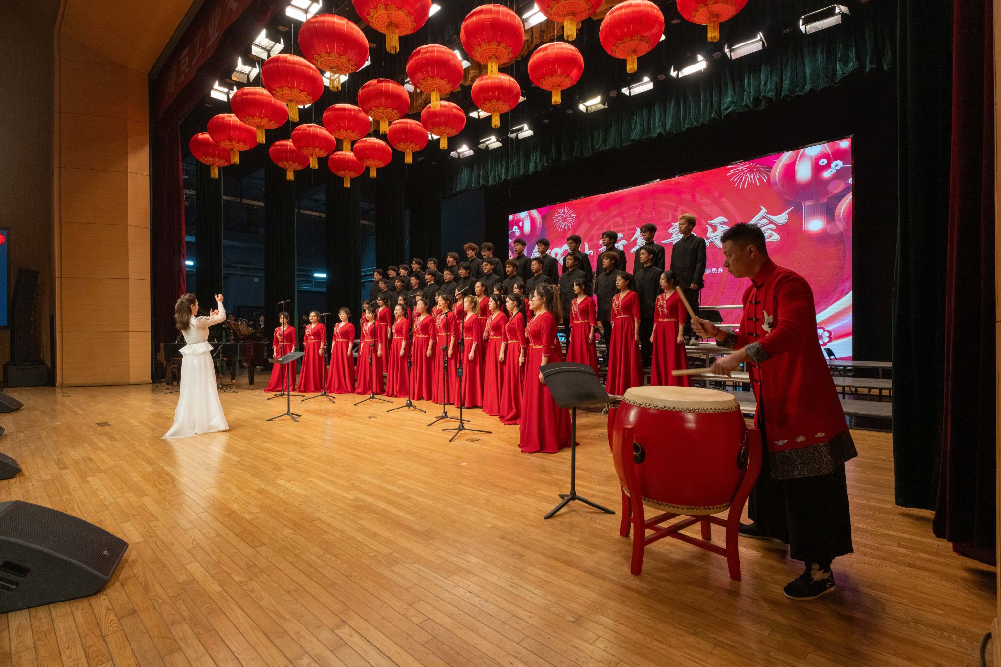 新年音樂會在《春節序曲》中拉開序幕。民樂合奏《鴻雁》融入蒙古族民歌元素,飽含著游牧民族的深情;《延河隨想》以充滿活力的節奏,熱情謳歌了不朽的延安精神;大學生合唱團帶來曲目《將進酒》《我愛你中國》,用優美的多部和聲唱出了灑脫豪邁的情懷和對祖國深沉熱烈的愛;鋼琴獨奏《瀏陽河》和《皮黃》以精湛的技藝為觀眾帶來了聽覺盛宴;《故鄉的云》《City of stars》以動聽的歌喉博得現場陣陣掌聲;《燈火里的中國》唱出了人民群眾對祖國的美好祝福和對未來的期許。